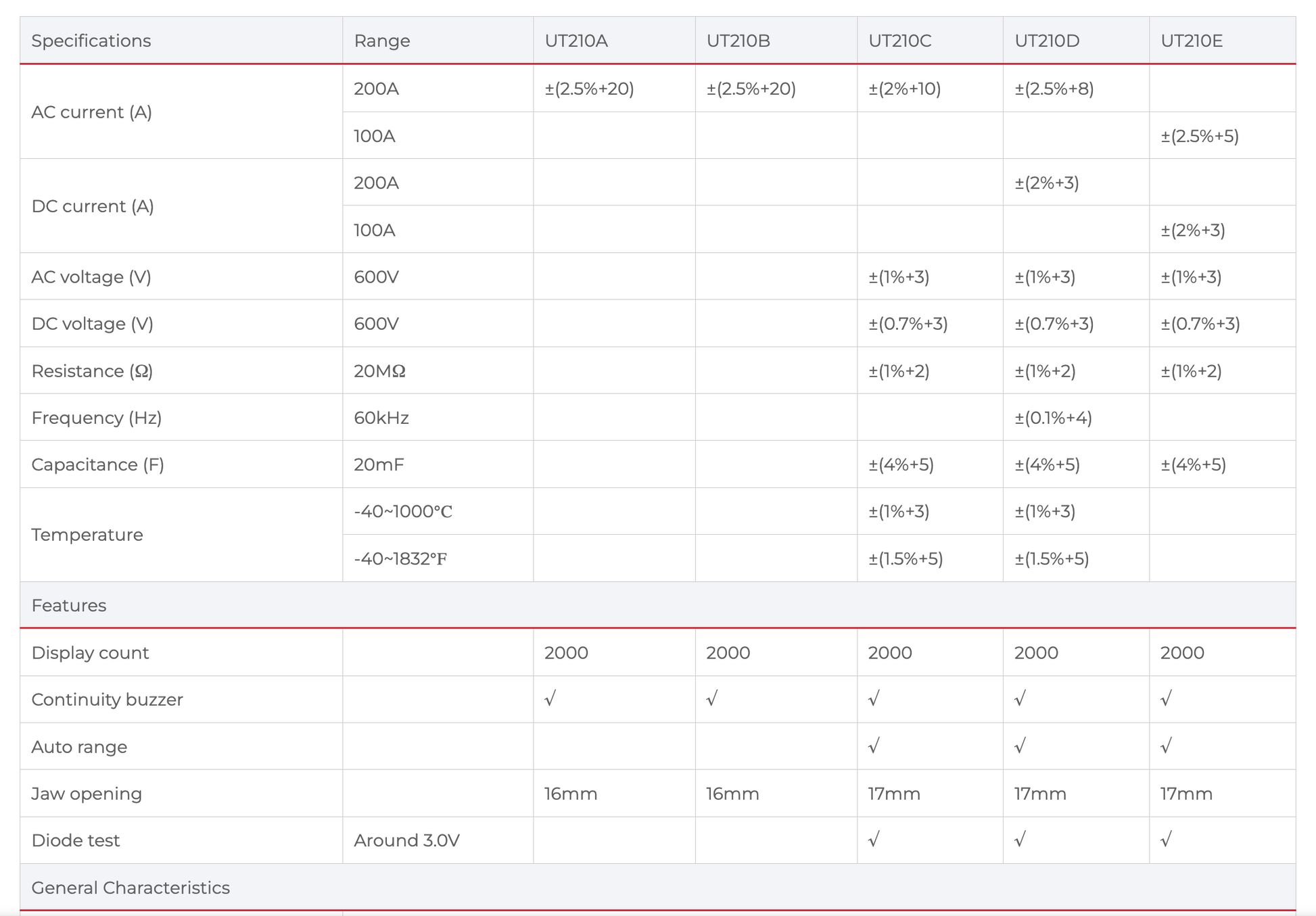 • UT210 series mini clamp meters are designed to work well in limited space environments